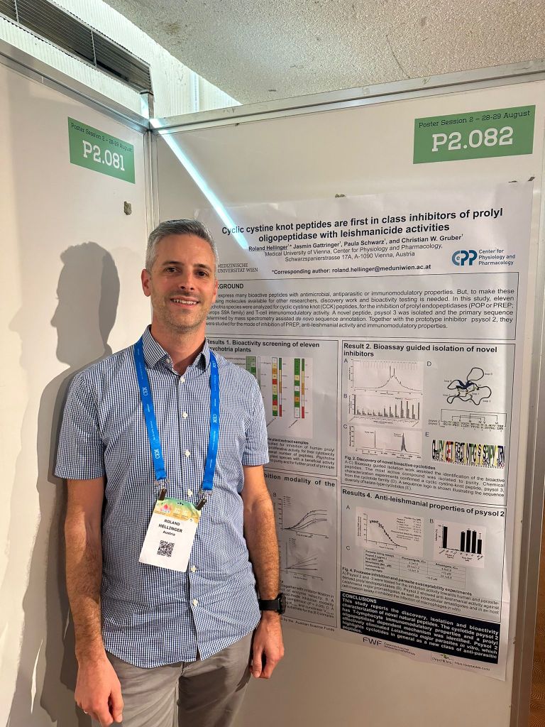 The research consortium, wit the scientists Roland Hellinger, Kirtikumar Jadhav, Jasmin Gattringer and Paula Schwarz, attended the 37th European Peptide Symposium and the 12th International Peptide Conference in Florence from 24-30th August. The project work of several projects was presented in a total of five posters. Advisory Board Members, DR. Christian W. Gruber and Dr. Markus Muttenthaler gave excellent oral talks.