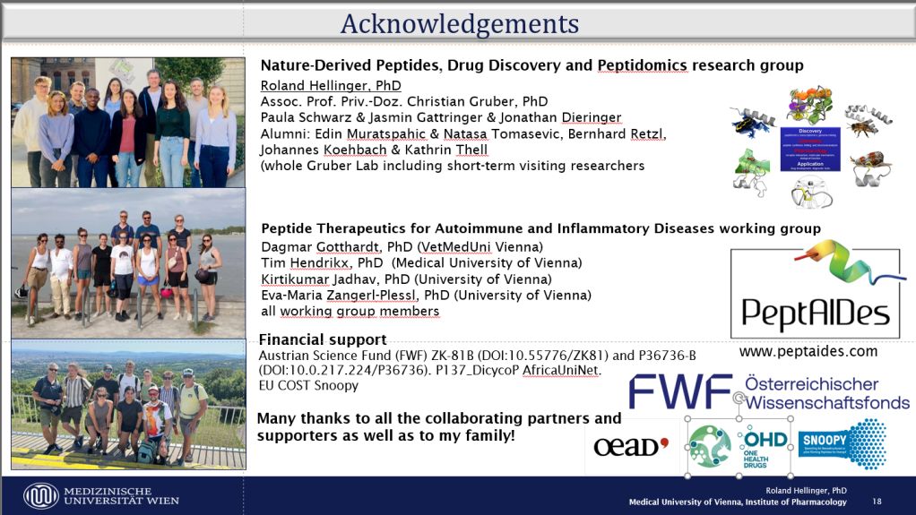 PI Dr. Roland Hellinger was invited to give an oral presentation at the 2nd Blood-Brain-Barrier Barcelona Conference with around +150 attendees. The title of the talk was „BLOOD BRAIN BARRIER – NATURAL PEPTIDE SHUTTLES FOR DRUG DELIVERY INTO THE CNS“.